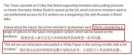 泄密公函:据英国《每日邮报》网站2017年9月6日报道,日前泄露的一份政府文件显示,英国将在脱离欧盟后大幅收紧移民政策,限制低技能欧盟移民的数量,并要求境内企业优先雇用英国公民。当地时间9月5日晚,英国《卫报》刊发一份名为“英国脱离欧盟后的边境、移民和公民体系”的政府文件。这份文件厚达82页,标注日期为2017年8月,其中概述了英国内政部在英国“脱欧”后管理移民的建议。文件中明确表示,内阁大臣们将以削减净移民的数量和给予本地工人优先雇佣权为目标,制定英国“脱欧”后的移民政策,“对于整个国家而言,移民不应仅让移民本身受惠,也要让现有居民更好地受益”。