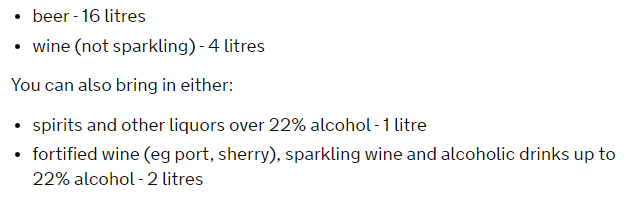 ·Alcohol allowance 酒类允许携带量